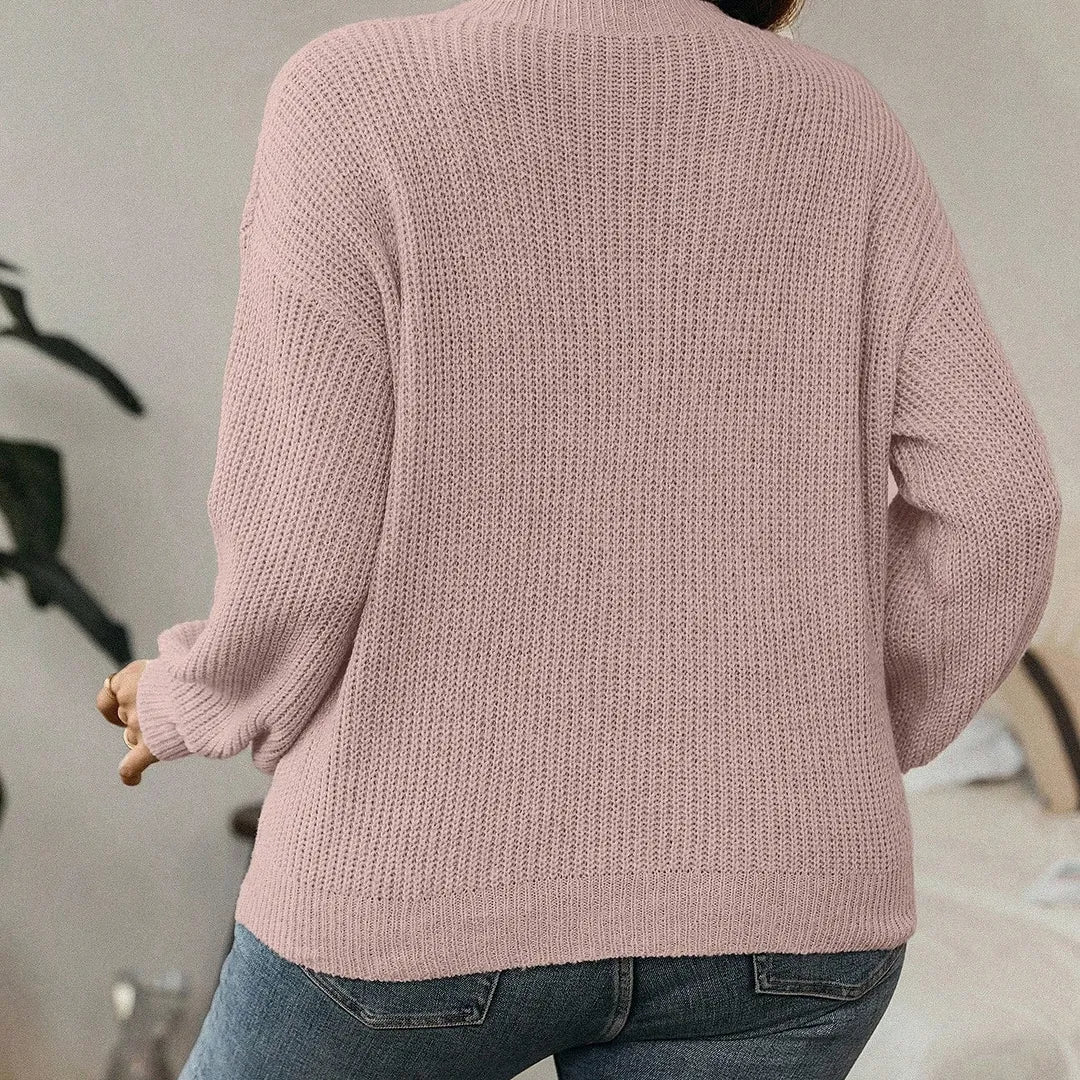 EMERY ROSE Plus Size Women V-Neck Dropped Shoulder Long Sleeve Casual Loose Pullover Sweater, Autumn Fall Winter Cloth For Women